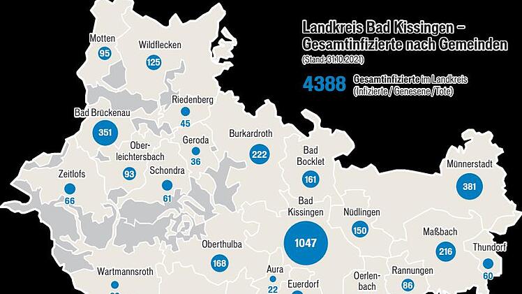 Die Regierung von Unterfranken hatte in ihrer Übersicht für den 1. November eine Inzidenz von 208,4 angegeben. Diese Daten beruhen auf den Angaben des Bayerischen Landesamtes für Gesundheit und Lebensmittelsicherheit (LGL). Die unterschiedlichen Zahlen lassen sich mit den unterschiedlichen Abrufzeiten der Datensätze erklären. So schreibt das Landratsamt über die Angaben des Staatlichen Gesundheitsamtes Bad Kissingen: "Da am Feiertag, 1. November, keine Daten erhoben wurden, stammen die Zahlen von den eingegebenen Fällen vom 31. Oktober (Stand: 17 Uhr)."