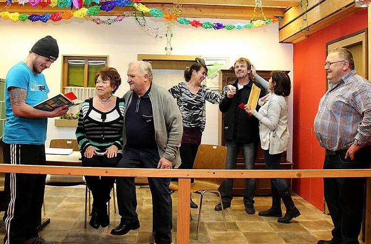 Linda Nastvogel ist schon mehr als 27 Jahre Mitglied in der Aischer Theatergruppe. "Es macht mir unheimlich Spaß, und das Lernen ist gar nicht so schwer", verrät sie lachend. "Ich bin halt manchmal nur lernfaul", ergänzt sie. Vor den Aufführungen ist sie trotz allem immer sehr aufgeregt. "Ich brauche dann Notfalltropfen oder einen Schnaps", sagt sie schmunzelnd. Das Stück gefällt nicht nur ihr. Alle Laienschauspieler der Aischer Theatergruppe finden es witzig und lustig.