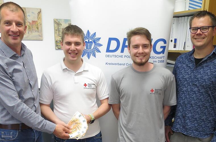 Die "Junge Polizei" der Deutschen Polizeigewerkschaft leistet einen Beitrag zur Anschaffung eines Patientensimulators der BRK-Bereitschaft Neustadt bei Coburg.