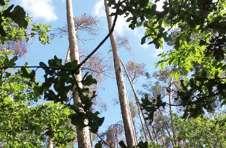 Seit wann wird das sogenannte Kiefernsterben beobachtet?Daniel Schenk: Richtig auffallend waren die Schäden erst 2017. Dem Fachmann stachen sie jedoch schon im Trockenjahr 2015 ins Auge.