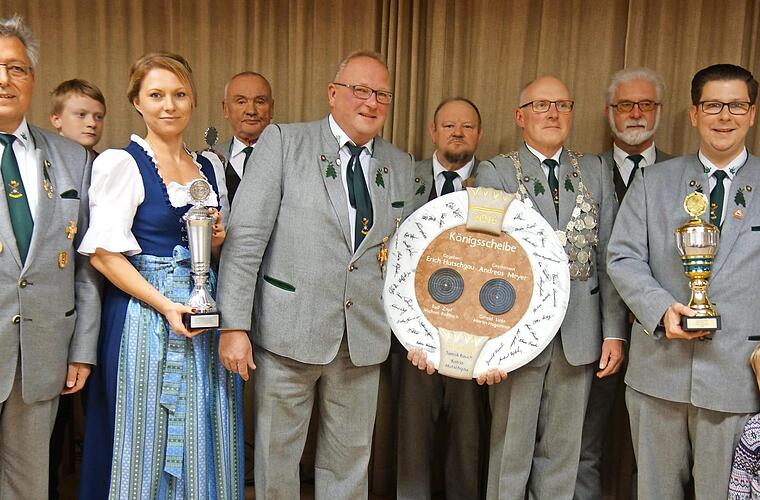 Die Schützengesellschaft Einberg ist ein sportliches Aushängeschild Rödentals. Nicht nur, dass extern große Erfolge erzielt werden, sondern dass auch intern großer Wert auf die sportliche Basis gelegt wird, so unter anderem beim Pokalschießen. Neben den Pokalübergaben im Rahmen des traditionellen Königsessens erfolgte noch die Übergabe der Königsscheibe durch den Inhaber 2016 Erich Hutschgau an den neuen König 2017 Andres Meyer. Die Scheibe ist, wie betont wurde, etwas Besonderes, denn sie ist von einem Steinmetz gefertigt. Bei der Übergabe meinte der Vorsitzende Bernd Roßbach, dass ein derartiges Schützentreffen nicht selbstverständlich sei. Gauschützenmeister Klaus Jentsch zeigte sich deshalb erfreut über die vielen Mitglieder, die zum Verein stehen, und der neue König fand lobende Worte.
