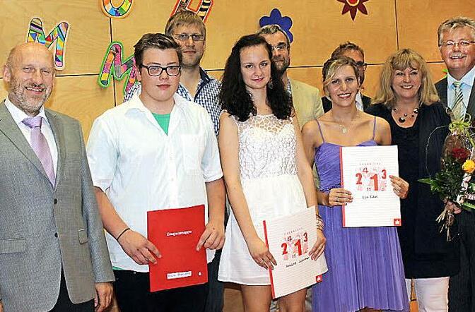 Rektorin Silvia Krüger merkte an: "Die meisten von Euch erreichten die mittlere Reife, aber auch auf Euren Quali oder sonstigen Abschluss könnt Ihr stolz sein!" Die neue Freiheit bedeute auch ein Stück mehr Selbstverantwortung als bisher. Sie habe allen Absolventen ein Stück Traubenzucker als Zukunftsenergie mit in die Zeugnismappe gelegt, bemerkte die Schulleiterin schmunzelnd. "Zwei Schüler können auf Grund eines Krankenhausaufenthalts sowie der Geburt eines Kindes nicht an der heutigen Feier teilnehmen. Ihnen wünschen wir alles Gute", hob Silvia Krüger hervor. Die drei Prüfungsbesten (Lisa Dübel, Pauline Schirmer, beide M10; Kevin Barnickel, 9. Klasse) wurden ebenso wie Schüler, die besondere Leistungen erbracht hatten, geehrt. Als Dank erhielten sie einen Gutschein.