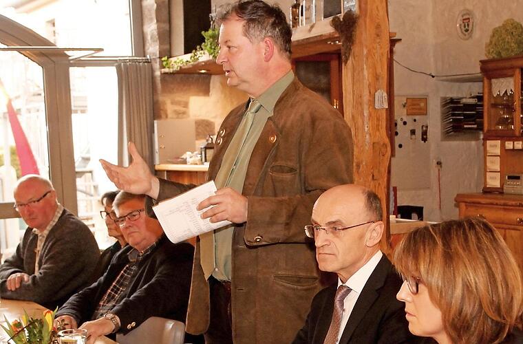 Günther geiling Die Bauern sind sauer und wehren sich: "Was momentan in der Öffentlichkeit los ist, hätte ich mir vor einem Jahr noch nicht vorstellen können. Die Landwirtschaft wird in eine Ecke gestellt, als wenn sie schuld am Artensterben und allem anderen wäre. Dabei sind wir Landwirte die Grünen schlechthin und haben schon vor dem Volksbegehren seit Jahren viele Maßnahmen wie Blühflächen, Gewässerstreifen und Mulchsaaten freiwillig geleistet." Dies betonte der Kreisobmann des Bayerischen Bauernverbandes (BBV), Klaus Merkel, beim Behördentreffen in Knetzgau. Dazu hatte die BBV-Kreisvorstandschaft eingeladen, um die Probleme der Landwirte und die Berührungspunkte mit den Behörden und Politikern ausgiebig zu diskutieren.