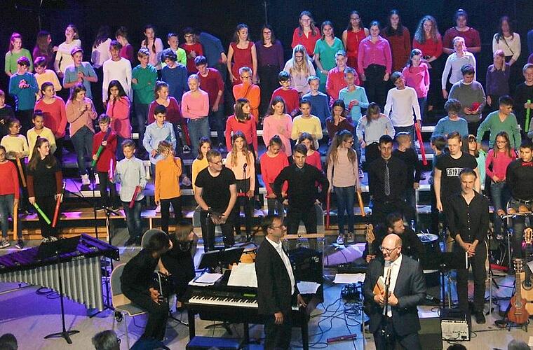 Yagmur und Nisa aus der sechsten Klasse freuten sich in der Pause schon auf den zweiten Teil. "Der ist bewegter und cooler." Sie singen sehr gern, und obwohl jeder Zuhörer hinter einer solch hohen schülerischen Chorleistung ein strenges Unterrichtsregiment vermutet, bestätigten die beiden, dass die Stimmbildung, das Arbeiten an Choreographie und Ausdruck ungemein viel Spaß machten. Sie dürfen selber mitentscheiden, welche Gesten zur Musik passen, und stellen fest, dass die Konzentration auf ein Lied einen manchmal richtig mitreißt.