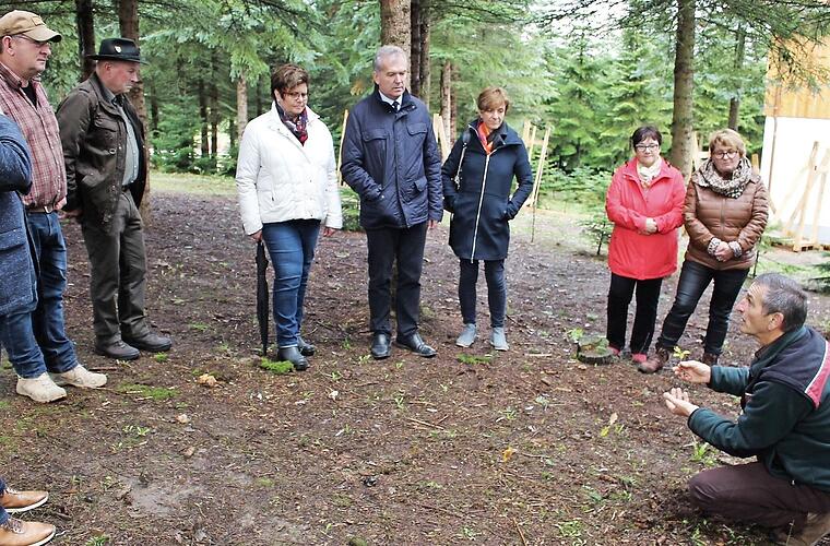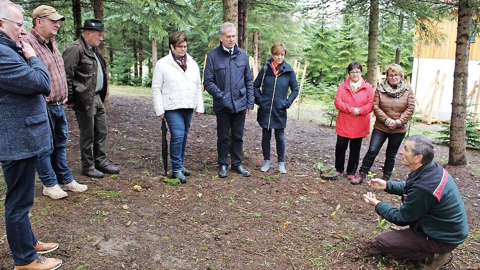 Zur Information hatten die Unternehmer für eine Art Lehrpfad gesorgt. Als müsse alles unter Beweis gestellt werden, gab es entlang des Weges Überraschungen. Eine unglaubliche Ansiedlung von Fliegenpilzen zum Beispiel. Aber auch eine Menge an Eichen-Sprösslingen. "Obwohl es im weiten Umkreis keine Eiche gibt", wie Förster Gerhard Hofmann aus Wachenroth erklärte. Dass die Natur von den Christbaumkulturen profitiert, bestätigte der Förster. Die immer seltener werdende Feldlerche schätze das übersichtliche Gelände. "Sogar der Wiedehopf, den wir im Wiesengrund verloren haben, findet sich hier."