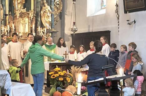 Ein volles "Haus" war die Pfarrkirche St. Johannes und St. Ottilie in Kersbach. Mit Pfarrer Martin Emge und Diakon Christian Wohlfahrt feierten Kinder, Jugendliche und viele Gemeindemitglieder Ernteda...