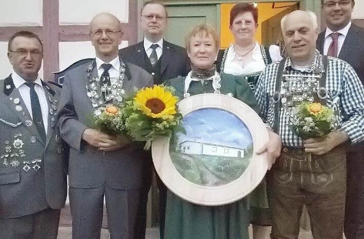 Außergewöhnliche Ehrungen Im Rahmen des Hauptschießens nahm Oberschützenmeister Wolfgang Heinze auch zwei außergewöhnliche Ehrungen vor: "Wir haben die besondere Ehre, noch ein lebendes Gründungsmitglied unter uns zu haben. Gauschützenmeister Klaus Jensch ist extra zur Ehrung gekommen."