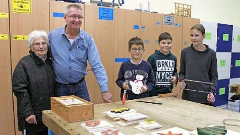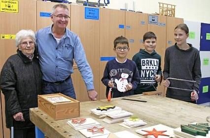 Großer Andrang und künstlerische Begeisterung waren in der Bastelstube bei den Laubsägearbeiten unter Leitung von Raimund Albert erlebbar. Er ist seit zwölf Jahren mit dabei. "Es macht mir immer wieder Spaß, die Vorarbeiten für den Weihnachtsmarkt das Jahr über zu erstellen", bekundete er. Das Ergebnis: Laubsägearbeiten als Weihnachtsgeschenke aus Holz werden erstellt und dann farbenprächtig angemalt.