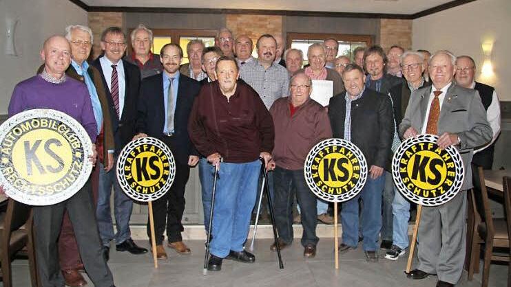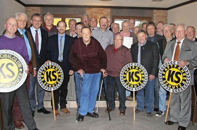 Reinhardt Baumgartner ist schon über 80 Jahre alt, doch der Kraftfahrerschutz ist noch immer seine Passion. Deshalb nutzte er den großen Ehrungsnachmittag im Gasthaus Zum Gründla, um das schwarz-gelbe KS-Schild hochzuhalten. Der Kraftfahrerschutz ist und bleibt seine Lebensaufgabe, auch wenn eigentlich die Arbeit mit den Versicherten längst sein Sohn Roland übernommen hat.