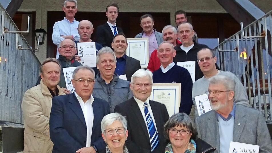 50 Jahre sind Hans Körner, Lorenz Krebs und Oswald Wagner dabei, für sie gab es die "Goldene Ehrennadel" samt Urkunde und eine Vereinsuhr.