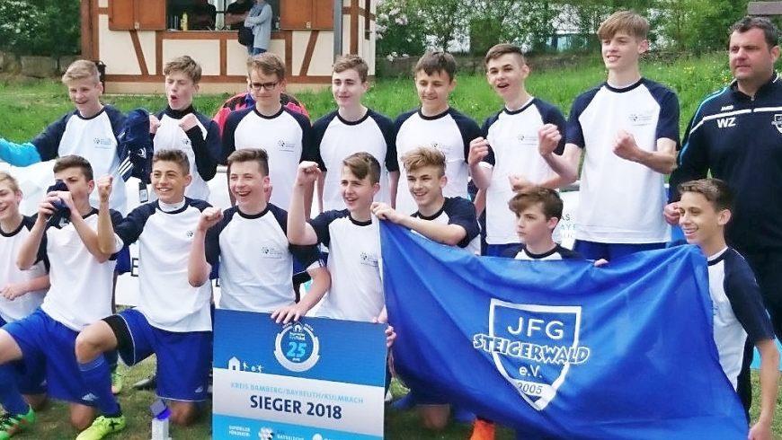 Im Finale traf die JFG auf die (SG) Breitengüßbach/Ebing, die den Sportring Bayreuth im Elfmeterschießen bezwungen hatte. Die Steigerwälder waren dem Kreisklassisten überlegen und schossen einen deutlichen 11:1-Sieg heraus. Die JFG Steigerwald richtet am Sonntag, 10. Juni, ab 10 Uhr erstmals das Bezirksfinale in Reichmannsdorf aus.