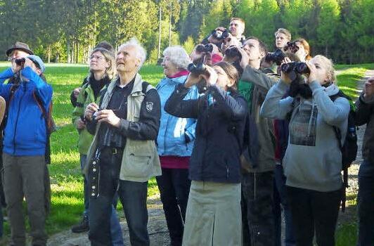Am Samstag früh um 6 Uhr waren dann alle mit Fernglas ausgerüstet für die Exkursion zum Konzert durch die Wälder und Fluren rund um Lauenstein. Gleich zu Beginn erwartete die interessierten Vogelstimmenliebhaber eine Sensation. Ein Eisvogel flog für alle gut sichtbar am Waldrand vorbei.