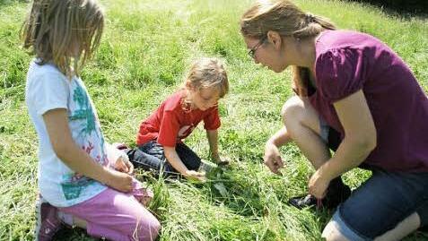 Auf Entdeckungsreise Mit der Erlebnisbäuerin ging es zu einer Entdeckungsreise auf die Wiese. Da drei Klassen zu Gast waren, unterstützte Ute Leyh aus Losbergsgereuth ihre Kollegin.
