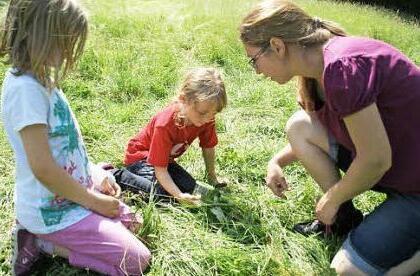 Die Becherlupen waren im Großeinsatz. Wer forscht, wird hungrig, und so wurde frisch gebuttert. Dazwischen gab es Spiele rund um Flora und Fauna der Wiese, "Fledermaus und Motte" beispielsweise. Zum Abschluss statteten die Grundschüler den Tieren auf dem Bauernhof noch einen Besuch ab.