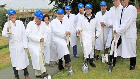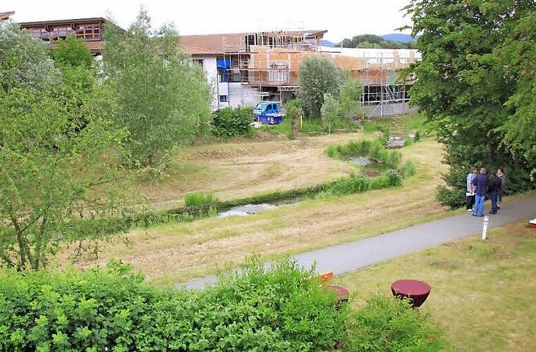 Baubeginn Der symbolische erste Spatenstich bildete den Auftakt zum Bau eines Bademantelganges vom Staffelsteiner Kurhotel über die Lauter in die Obermain-Therme. Das Bauwerk ermöglicht Hotelgästen, die Therme bequem zu erreichen.