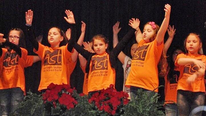 Die Kleinen der Adalbert-Stifter-Grundschule spielten anfangs nervös an den Haaren, kicherten und schubsten sich, doch als Julia Deutsch diktierend die Hände hob, wurde die Nervosität zur Konzentration. Bei jedem Lied spürte man die kindliche Freude an der Musik, die keine Sprachbarrieren kennt.