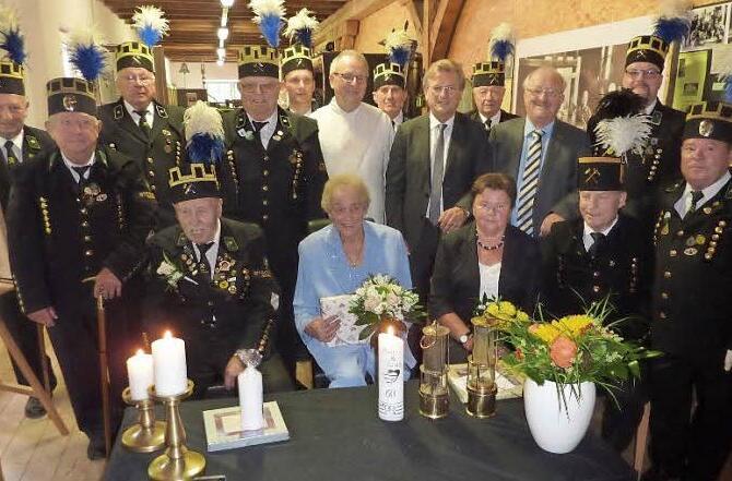 Bei schönstem Wetter kutschierte Kuno Frey mit seinem Pferdegespann das Jubelpaar Ludwig zum bergmännischen Magazin, das von den Knappenfrauen festlich herausgeputzt worden war. Zum Auftakt der Festlichkeiten standen die Knappen Spalier. Und den Dankgottesdienst hielt Diakon Wolfgang Fehn, musikalisch umrahmt von der Bergmannskapelle.