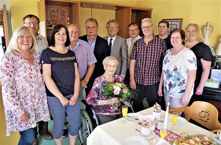 Dora Bänsch, geborene Tietze, hat im Stockheimer Altenpflegeheim Haßlachblick im großen Kreis von Gratulanten ihren 95. Geburtstag gefeiert.