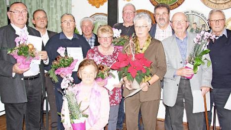 Ekkehard Gerlicher und Klaus Kirchner wurden für 40 Jahre mit der Landesverbandsnadel in Gold ausgezeichnet. Annemarie Herzog, Michael Lodes, Günter Martin, Bernd Reisenweber, Rudi Reißenweber, Bettina Rosenberg, Heinz Rychtar, Thomas Schillig, Ernst-Friedrich Sperschneider sind 25 Jahre dabei.