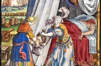 Im 16. und 17. Jahrhundert entstanden vielfach Darstellungen, die das damals gängige Verhältnis der Geschlechter zueinander auf den Kopf stellen, indem sie die Frau als Gefahr für den Mann ins Bild setzen. Die sogenannten Weibermacht-Darstellungen haben eine große Spannbreite: Eher harmlos sind Darstellungen, die zeigen, wie Frauen Männer zu unklugen Handlungen verleiten. Daneben stehen - oft auf biblische und mythologische Geschichten zurückgehende - Darstellungen von Frauen, die letztendlich den Tod des Mannes verursachen.