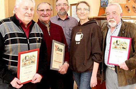 Ehrungen und die Nachwahl des Zweiten Vorsitzenden standen in der Jahreshauptversammlung des Geflügelzuchtvereins (GZV) Adelsdorf auf der Tagesordnung. Zunächst überreichte Vorsitzender Johannes Weiß den Züchtern Theo Galster und Werner Mönius für ihre langjährige Treue zum Verein eine Urkunde.