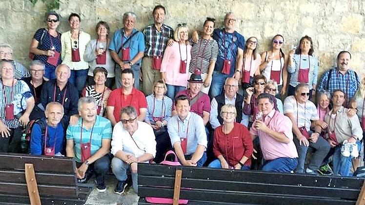 Die Termine der "Ehemaligen" der Stadtjugendkapelle Herzogenaurach werden im Herbst weniger. Also die beste Gelegenheit, um zu einem Ausflug zu starten, der die Musiker bei strahlendem Sonnenschein nach Seligenstadt nach Unterfranken führte. Nach der Busfahrt begann am Seligenstädter Bahnhof die Fahrt mit der nostalgischen Mainschleifenbahn über Prosselsheim, Eisenheim und Escherndorf bis nach Volkach-Astheim. Auf der Weininsel in Sommerach und bei einer geführten Weinwanderung gab es viel Wissenswertes über den fränkischen Wein. Dass dieser natürlich verkostet werden musste, gehört in einer Weingegend dazu. Das Angebot war so vielfältig wie die Geschmäcker. Nach einer kräftigen Stärkung in der "Alten Scheune" in Oberschwarzach war die Heimfahrt um ein Vielfaches lustiger als die Hinfahrt. Text: Sänger/Foto: privat