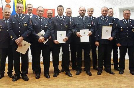 Für 25-jährige aktive Dienstzeit geehrt wurden Heiko Heusinger, Harald Zetzmann (Feuerwehr Rödental-Zentrum), Heiko Zehner (Froschgrund) und Marcel Wohlleben (Steinrod). Für 40 Jahre aktiven Brandschutz ausgezeichnet worden sind Andreas Feustel, Heinz Pommer (Rödental-Zentrum) sowie Rüdiger Fischer (Froschgrund).