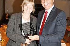 Die Bogenschützin und FW-Gemeinderätin Sabine Leuschner wurde von Bürgermeister Hermann Anselstetter (SPD) mit einem gravierten Glaspokal ausgezeichnet. Leuschner hatte im Sommer b...