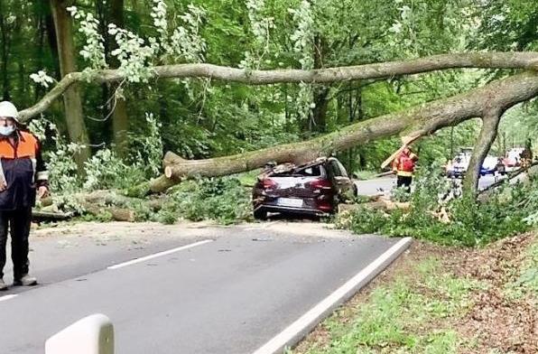 Auf der B 303 zwischen Gehülz und Mitwitz kam es am Montagabend um 18.30 Uhr zu einem folgenschweren Verkehrsunfall mit einer leichtverletzten Person und rund 25 000 Euro Schaden. Eine 35-jährige Frau befuhr mit ihrem VW Golf die Bundesstraße in Richtung Mitwitz, als auf Höhe der Heunischenburg eine massive Eiche von rechts nach links auf die Fahrbahn kippte und den Golf unter sich begrub.