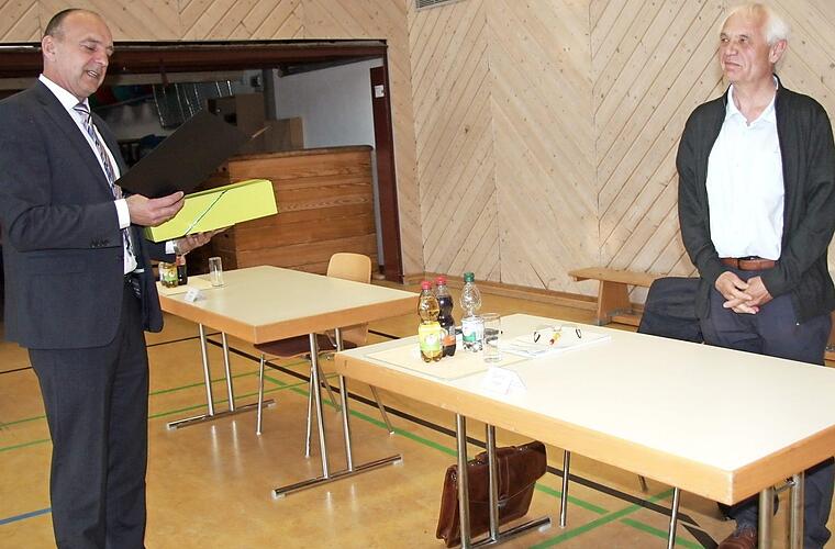 Mit: "Sie, liebe in wenigen Minuten Ex-Mitglieder unseres Gemeinderates, haben sich auf dieses besonders aufwendige Feld der Politik begeben und viel Ihrer Freizeit geopfert. Wenn andere ihren privaten Hobbies und Vergnügen nachgegangen sind, haben Sie, nachdem Sie oftmals umfangreiche Sitzungsvorlagen durchgearbeitet hatten, an Beratungen teilgenommen", wandte sich der Bürgermeister an die sechs ausscheidenden Mitglieder.