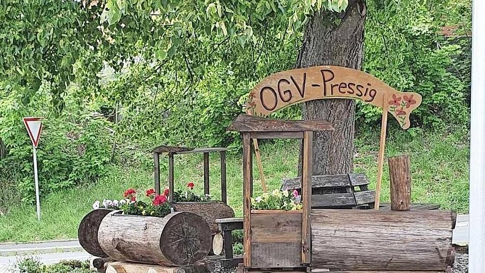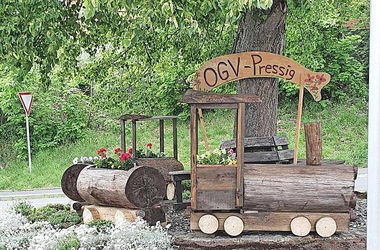 Der Obst- und Gartenbauverein Pressig lebt auch in Corona-Zeiten mit Ideen und Aktivitäten. In der jüngsten Vorstandsbesprechung resümierte Vorsitzender Andreas Schorn: "In den vergangenen drei Monaten war an ein normales Vereinsleben nicht zu denken. Sämtliche im Jahresprogramm festgelegten Termine mussten wegen der Corona Pandemie bedingt ausfallen". Trotzdem lebte aber der Verein weiter. So erstellte Schorn mit einigen Helfern eine sehenswerte und schmucke Holzeisenbahn, die seit einigen Tagen den Platz unter der Linde in der Welitscher Straße ziert. Ferner wurde liebevoll bunter Blumenschmuck angebracht. Die Holzeisenbahn ist sehr passend, in Nähe der Bahnverbindung München-Berlin, der Bahnhofstraße und dem Bahnhof angebracht und verweist außerdem auf die enge Verbindung von Pressig mit der Eisenbahn.