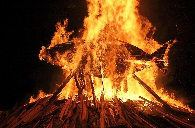 Manfred Mellenthin Über 600 Zuschauer waren in diesem Jahr von der Kunstaktion "Burning Fish" (Brennender Fisch) des Berliner Künstlers Herbert "Jimmy" Fell begeistert. Bis fast kurz vor Mitternacht loderte der Scheiterhaufen.