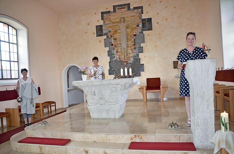 Seit Jahrzehnten halten Regina Welscher, Marion Büttner und Andrea Kraus in unterschiedlichen Funktionen den Gottesdienstbetrieb in der Kehlbacher Marienkirche am Laufen. Ans Aufhören denken sie noch lange nicht.