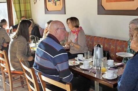 Bürgermeisterin Christiane Meyer (NLE) hat das Angebot genutzt und ist mit Familie gekommen: "Wir frühstücken gern. Hierher kann ich meine Familie auch mitbringen. Das ist unkompliziert und das Angebot ist vielfältig." Beim gemütlichen Zusammensein am Samstagmorgen im "Terrassencafé Annette" kann sich auch eine Bürgermeisterin entspannen. Eugenie und Joachim Kortner sind ebenfalls begeistert, denn das Frühstück ist perfekt und sie treffen Leute, die sie kennen.