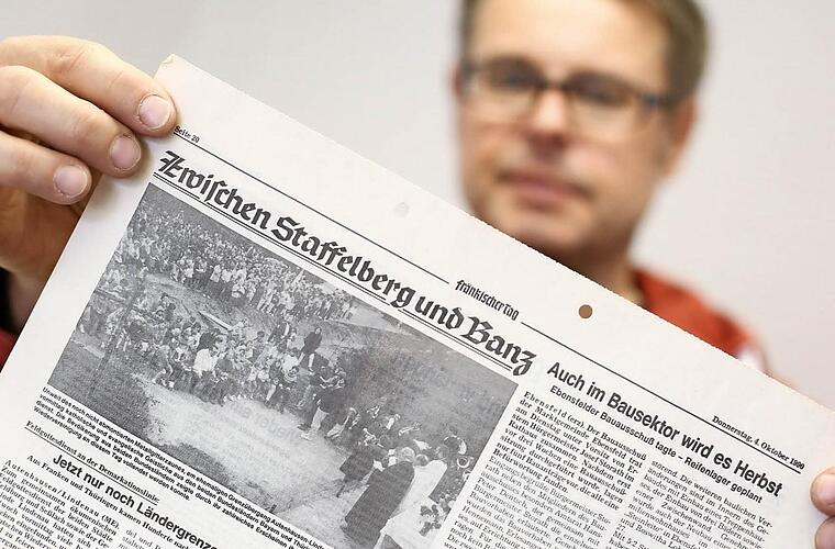 Das Schwarzweißfoto aus der Zeitung vom 4. Oktober 1990 erscheint mir heute wie aus einer ganz anderen Zeit.