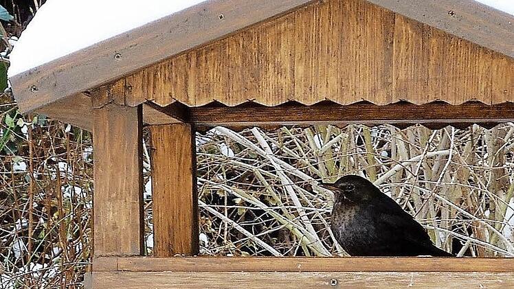 Vogelhäuschen sind aufgrund der hohen Schneedecke zurzeit bei unseren gefiederten Freunden als Schutz und vor allem als Futterstelle sehr gefragt. Die Amsel scheint sich jedenfalls wohlzufühlen und schaut unserem Fotografen zuversichtlich in die Linse. Foto: Gerd Fleischmann