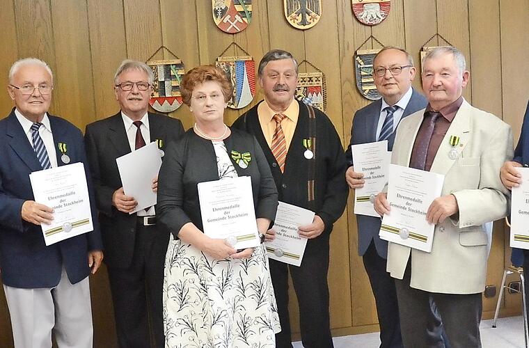 In einer Feierstunde im Rathaus verlieh Bürgermeister Rainer Detsch an sieben Persönlichkeiten die Ehrenmedaille der Gemeinde Stockheim. Sie wurden für ihr verdienstvolles ehrenamtliches Engagement au...