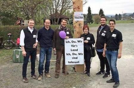 300 Gäste ließen sich das traditionelle Maibaumaufstellen der Landjugend in Unterzaubach nicht entgehen. Heuer fand die Veranstaltung im Rahmen des Projektes "Maibaum für Toleranz" des Bayerischen Bündnisses für Toleranz statt. Ziel war es, ein Zeichen für Toleranz, Respekt und Offenheit zu setzen, aufeinander zuzugehen und Grenzen zu überwinden. Die Landjugend Zaubach ließ sich hierfür auch einiges einfallen. Neben zahlreichen Statement-Tafeln, deren Texte Toleranz und Heimatverbundenheit dokumentierten, durften sich alle Gäste mit einem farbigen Handabdruck auf dem Maibaum verewigen. Klein und groß hatten dabei eine Menge Spaß, so dass der Maibaum mit seinen rund 28 Metern nun bunt verziert am Untersteinacher Landjugendheim in den Himmel ragt.
