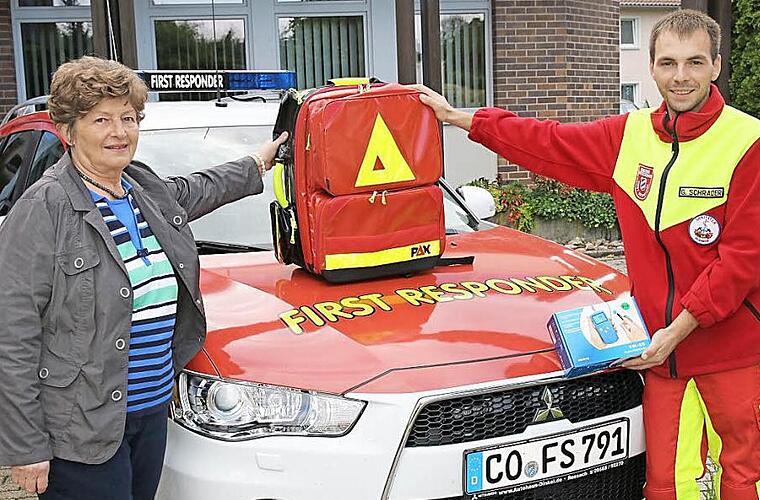 Schrader möchte mehr Personal Gabriel Schrader hat sich zum Ziel gesetzt, die Gruppe personell zu verstärken und die Ausbildung zu forcieren. Renate Mannel aus Untersiemau freute sich, an den neuen Leiter ein Pulsoximeter übergeben zu können.