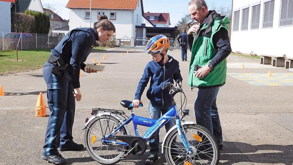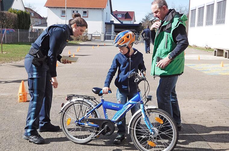 Nach der Theorie ging es zur Praxis. Die Polizeibeamten und Walter Mackert hatten einen Geschicklichkeits-Parcours vorbereitet. Alle 40 Kinder hatten ihr eigenes Fahrrad dabei und durften ihr Können auf dem Parcours unter Beweis stellen. Doch vorher wurde die Fahrräder von der Polizei auf ihre Verkehrssicherheit geprüft. Laut POK Beck und Walter Mackert gab es nur kleine Mängel, und die Kinder bekamen den Auftrag, diese von den Eltern beheben zu lassen. Die Erzieherinnen Svenja Seidel, Katherina Popp, Andrea Saal und Anja Kleine bedankten sich bei der Polizei und der Verkehrswacht für den lehrreichen und für alle Kinder des Kinderhorts unvergesslichen Tag.