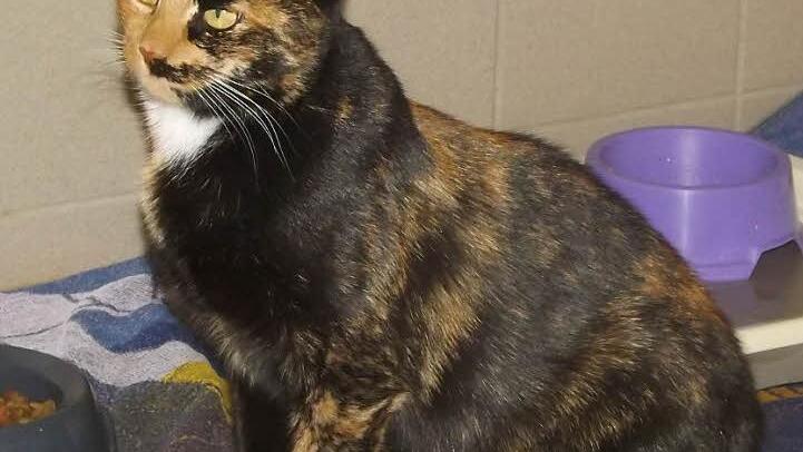 Die schildpatt-farbene Hauskatze Ravenna ist bildhübsch und anschmiegsam. Sie wurde unverständlicher Weise ausgesetzt und sucht jetzt ein neues Zuhause.