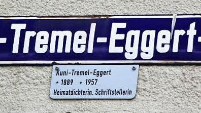 Nach Kuni Tremel-Eggert ist in ihrem Geburtsort Burgkunstadt eine Straße benannt. Mitten in der Stadt, am Marktplatz, biegt das Seitensträßlein ab. Unter der emaillierten Namenstafel prangt ein Täfelchen, auf dem Kuni Tremel-Eggert als Heimatdichterin und Schriftstellerin ausgewiesen wird.