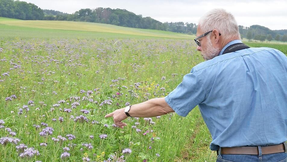 Dabei gehört dieser Blühstreifen gar nicht zum offiziellen Programm, dass in den Landkreisen Coburg, Kronach und Lichtenfels zur Rettung des Rebhuhnes aufgelegt wurde. Er ist Teil einer eigenen Initiative des LPV. 30 Hektar haben Landwirte über den gesamten Landkreis verteilt zur Verfügung gestellt, damit dort die so genannte "Göttinger Mischung" ausgebracht werden kann. Das ist ein Gemisch aus Pflanzensamen, die dafür sorgen, dass auf der Fläche praktisch dauernd etwas blüht.