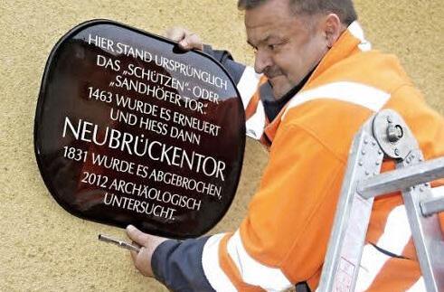 Am Montagnachmittag brachten Mitarbeiter des städtischen Bauhofes die Hinweistafel am Anwesen Dorsch an. Bewusst wurden an diesem Ort beim Neubau der Straße Pflastersteine verlegt, um die Besonderheit dieser Stelle hervorzuheben, erläuterte Lipp vor Ort. "Das Neubrückentor war eine von drei Mautstellen in Ebern", erklärte der Kreisheimatpfleger. "Provisoner" hätten 1729 morgens und abends die Tore geöffnet und gesperrt.