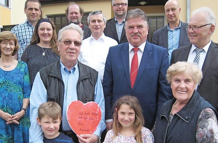 Ein riesiger Jubel brach aus, als Enkel Benedikt seinem Opa ein großes Herz mit den Worten "Ich hab dich sehr lieb, Opa" schenkte. Mit dem Altbürgermeister feierten am Abend Kaplan Pawel Hardej, Geistlicher Rat Reinhard Stauch, die Juramusikanten, Vertreterinnen des Hauses für Kinder, der Gesangverein 1970, die Mitarbeiter der Marktgemeinde und des Bauhofs, die Jakobspilger, die Zittergruppe "Emmas", Erhard Hildner von der Senioren Union sowie Vertreter der Freiwilligen Feuerwehr, des ASV, des Fischclub, der Siedlergemeinschaft und des Kleintierzuchtvereins.