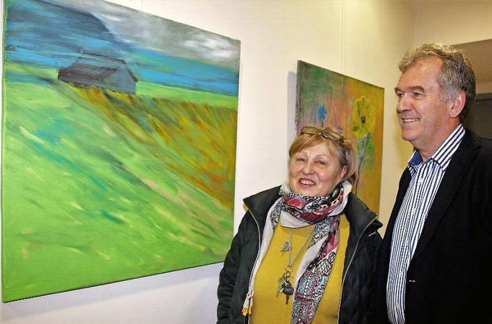 Vor der Gemeinderatssitzung hatte Bürgermeister Hans Beck zur Vernissage ins Rathaus eingeladen. Er freute sich, eine aus Pommersfelden stammende Künstlerin präsentieren zu können. Im Eingangsbereich, Treppenhaus und im Obergeschoss des Rathauses sind 14 Bilder der ehemaligen Pommersfeldenerin, die heute in Erlangen lebt, zu sehen. Sie werden dort über mehrere Monate bleiben und können auch käuflich erworben werden.