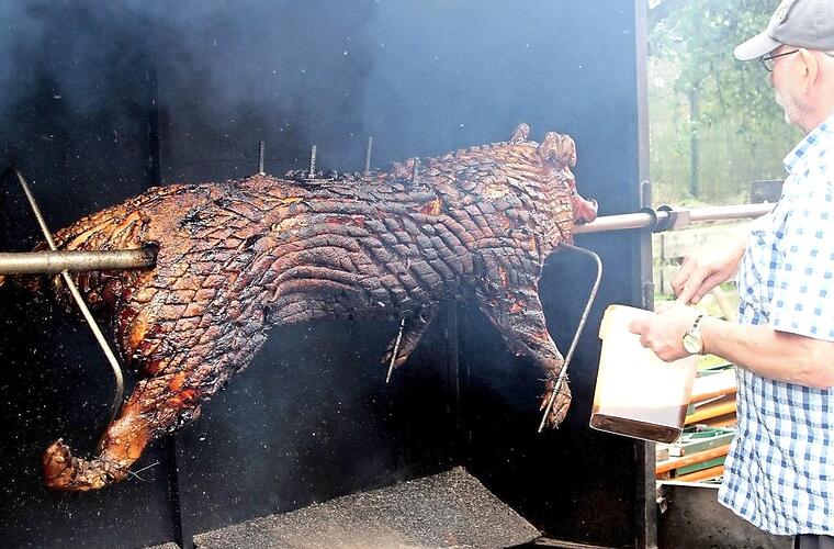 Im August kann es kalt werden. Und das trübte am Wochenende ein wenig die Stimmung. Nicht nur beim Weinfest am Michaelsberg in Bamberg, das das Ziegelangerer Weingut Bauerschmitt ausrichtete, auch das Limbacher Flößerfest hatte es diesmal nicht leicht. Kecker sah jedenfalls die Sau am Spieß aus, die am Samstagnachmittag nach alter Sitte gebraten worden war. Vom Wettertief ließen sich die Limbacher letztlich bei ihrem traditionellen "Flößerfest" nicht entmutigen und feierten auf dem Festplatz am Main und genoss das Bier.