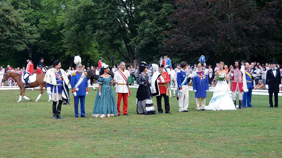 Bei einer Quadrille bilden die Pferde verschiedene Figuren. Dazu gehört einiges an Übung. Pferd und Reiter müssen gut aufeinander abgestimmt sein. Die Aktiven des Reitervereins meisterten dies mit Bravour und begeisterten so die Zuschauer und die historischen Persönlichkeiten, die dem Auftritt ihren Besuch abstatteten.