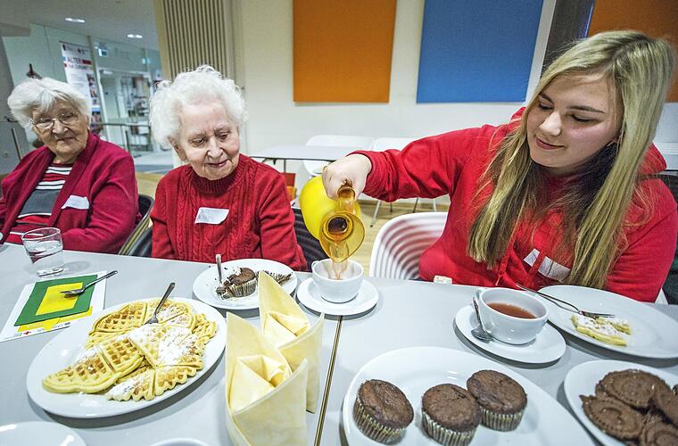 Alle Bürger sind am Dienstag, 21. November, von 9 bis 11.30 Uhr eingeladen, das "Gute-Laune-Frühstück" im Mehrgenerationenhaus (MGH) in Haßfurt zu besuchen. Die Schüler der Berufsfachschule für Ernährung und Versorgung der Heinrich-Thein-Berufsschule bereiten im Projekt "Lernen durch Engagement" ein Schlemmerbuffet vor, wie das Mehrgenerationenhaus mitteilte, das unter der Trägerschaft des Bayerischen Roten Kreuzes betrieben wird. Im Bild lassen sich Katharina Müller, Elvira Düring und Rebecca Weber die Köstlichkeiten vom Frühstücksbuffet schmecken. Foto: MGH Haßfurt