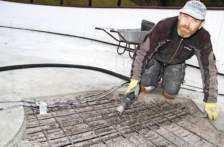 Sie müssen die Leitungen von allen Seiten freilegen, ohne diese zu verletzen. Anschließend wird der poröse Beton abgesaugt - und erst dann kann wieder eine neue Schicht aufgetragen werden. "Wahrscheinlich nehmen wir Schnellestrich, denn der ist in vier Tagen fest. Beton müssten wir 28 Tage aushärten lassen", sagt Stefan Strunz von der zuständigen Baufirma."Wir haben im Sommer schon einige Stellen saniert, aber dass wieder einige Stellen nicht gefrieren, sieht man eben erst, wenn man Eis macht", sagt Voss und bittet die Eisläufer und Eishockey-Begeisterten um ein paar Wochen Geduld. Anfang Dezember soll die Eisbahn schlittschuhfähig sein, auch die Eisdisco soll - wie geplant - am 2. Dezember stattfinden.